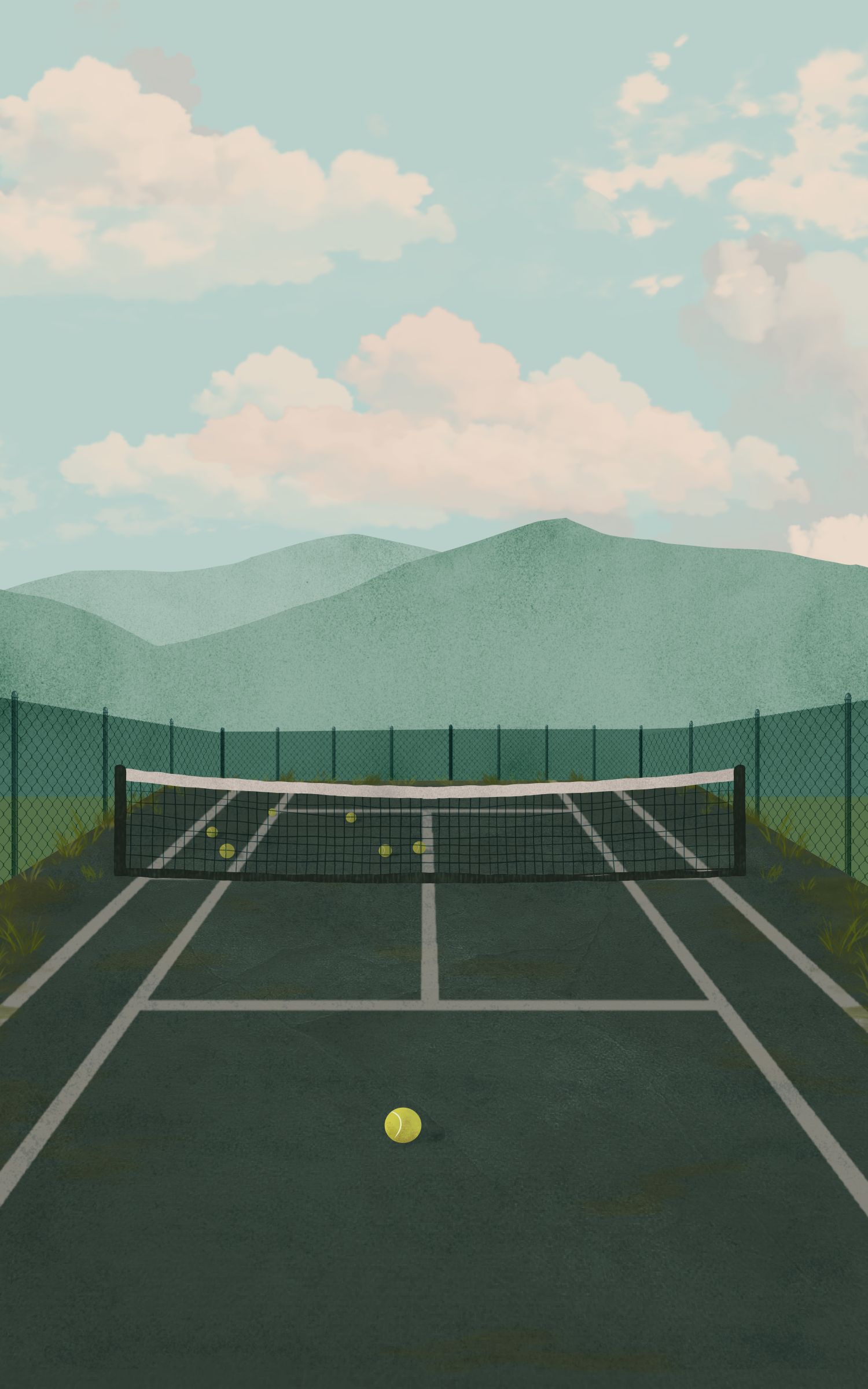 Designed and illustrated the final book cover featuring the protagonist in a contemporary tennis setting that reflects the story’s emotional themes.